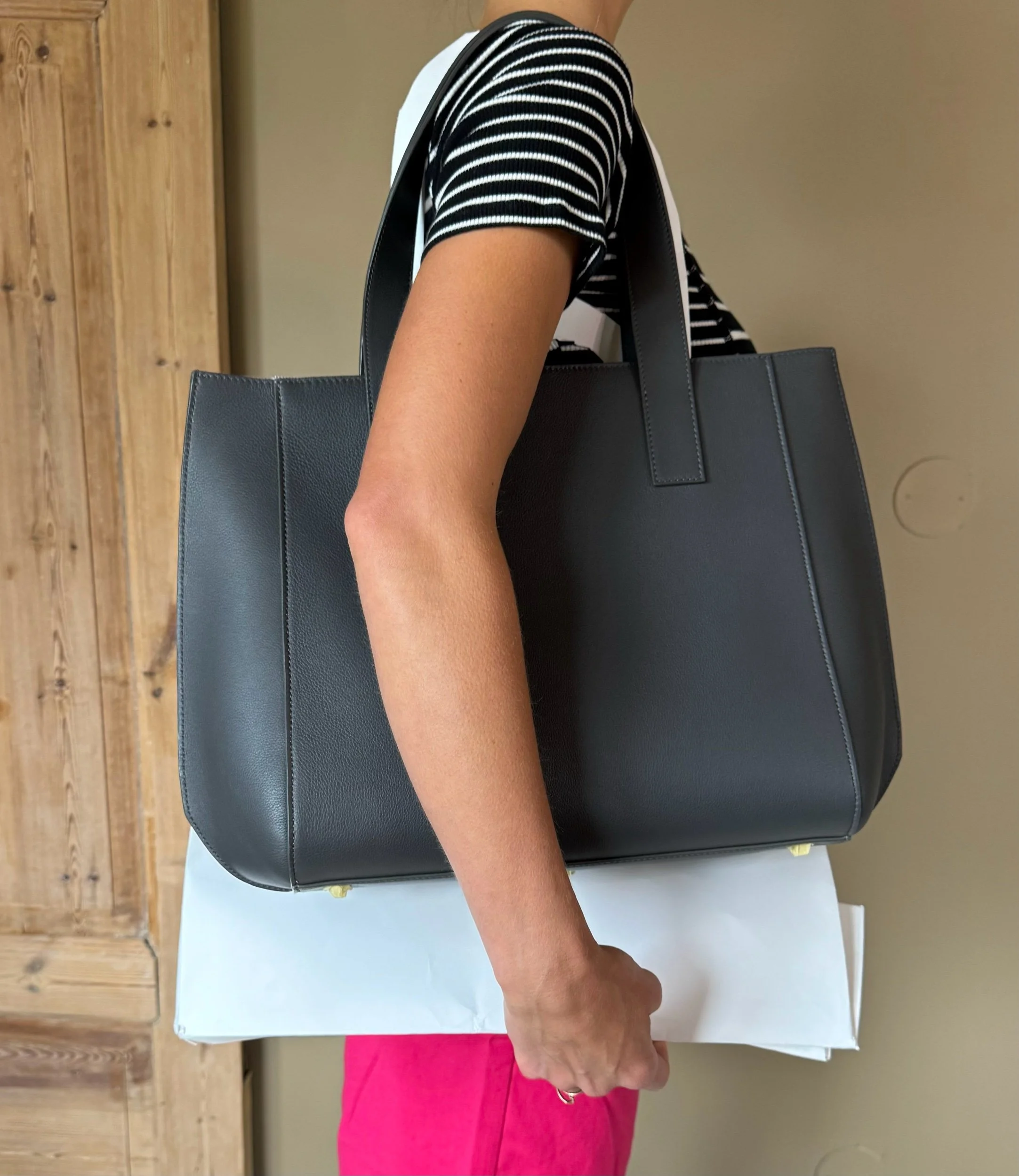 Liten, which means "small" in Norwegian, is a structured handbag in Serena's signature shape. It is the perfect size for holding daily essentials such as a smartphone, keys, lipstick, a small makeup bag, wallet, travel essentials like passports and boarding cards, coins, and headphones.